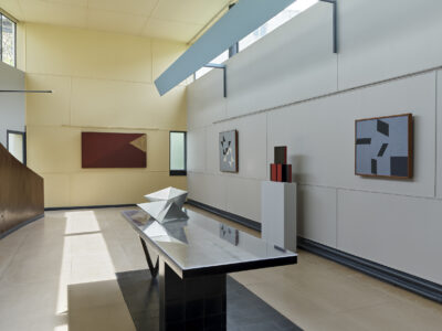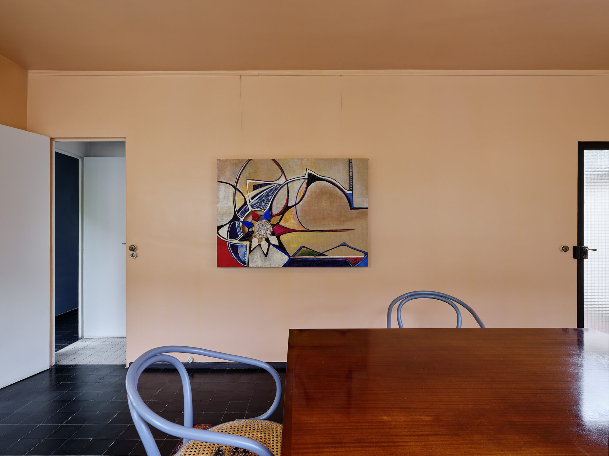 The architecture and polychromy of the La Roche House are the starting point for other creations, such as a painting by Marina Perez Simão, which will be exhibited in the dining room. Similarly, an abstract composition by Luísa Matsushita evokes the contrast between the organic forms and colors used in the house by Le Corbusier and the octagonal lines of the building. According to curator Claudia Moreira Salles, “an essential element of Le Corbusier’s architecture, particularly in the La Roche House, is his use of color to accentuate the perception of space. Taking this chromatic dialogue into account, we have selected works that will reinforce the polychromatic expression of each room.”