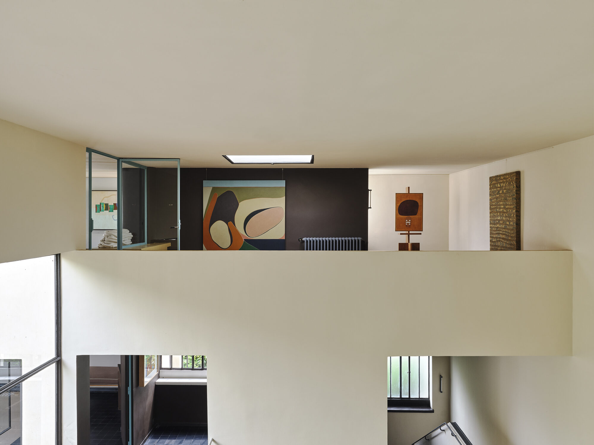 “An essential element in Le Corbusier’s architecture, especially in the Maison La Roche, is the color palette he used not decoratively but to accentuate the perception of spaces. The commissioned or chosen works were selected with consideration of the chromatic dialogue, not to match, but to enhance the expression of each environment”