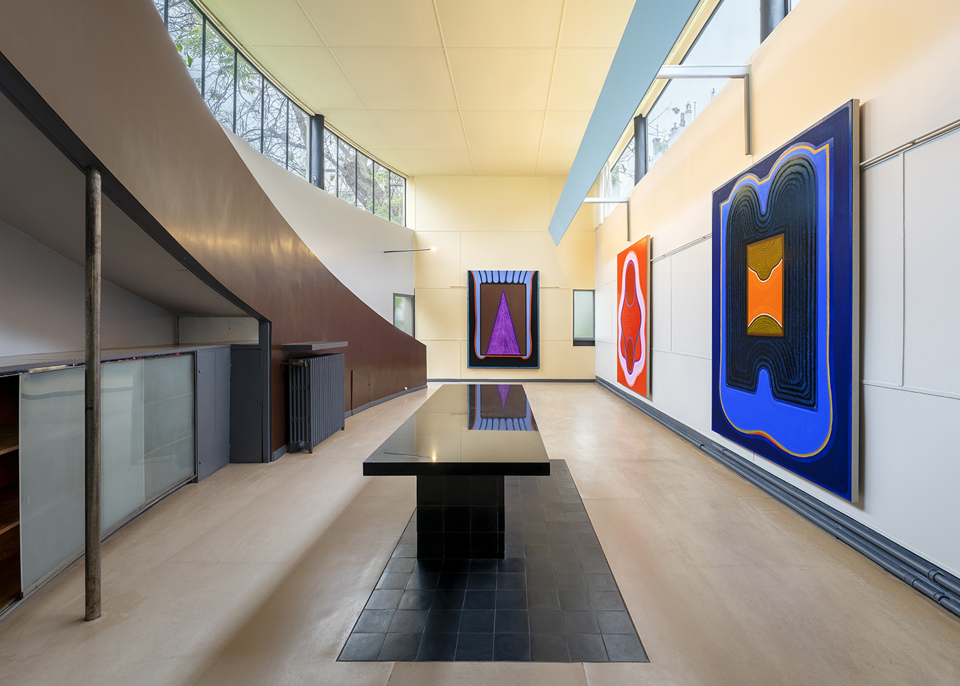 Today, she returns to the architect with a personal presentation of eleven new paintings created for the Maison La Roche.